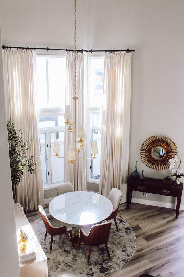 Our favorite thing in the world is working with repeat clients and it was so much fun to create this space for one of our favorite customers! We enjoyed infusing his personality and favorite things into his home. This client is a music lover and we planned the living space around his record player because he wanted to create the perfect space to entertain guests. We also brought in touches of mid century modern design and brass finishes for an updated retro feel. The result is a warm and welcoming space perfect for a party!