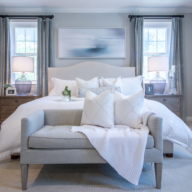 This project was a dream to work on! We fully remodeled the master suite to add lots of storage and a steam shower. We had to get creative to address the lack of storage without losing the windows, so we decided to run custom cabinetry along the window wall and suspend the mirrors from the ceiling. The clients were so open to our ideas and the result is one of our all time favorite spaces!