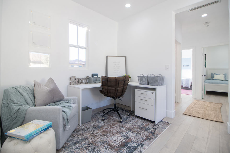 This project was so fun to work on because we infused the client’s personal style into every area of the home. The result is a fun, beachy, family home that everyone wants to spend time in! My favorite part of this project is the skateboard wall on the staircase showcasing the clients collection of skateboards.